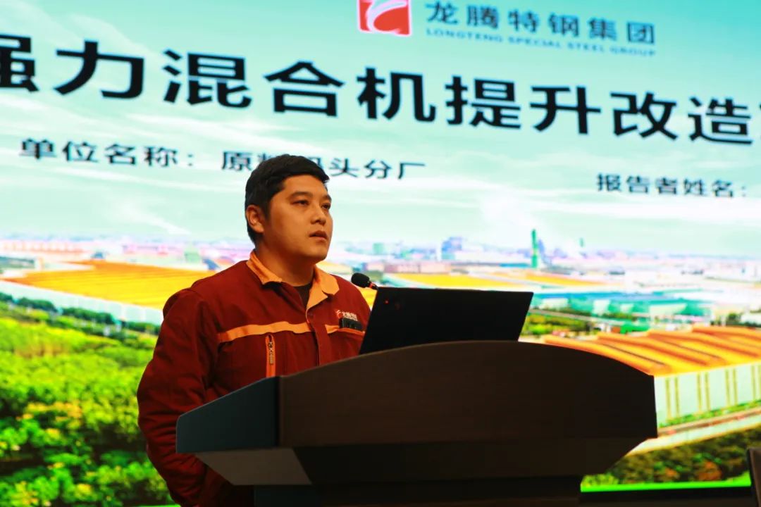 特鋼公司原料碼頭分廠張曉威作《強(qiáng)力混合機(jī)提升改造項(xiàng)目》課題匯報