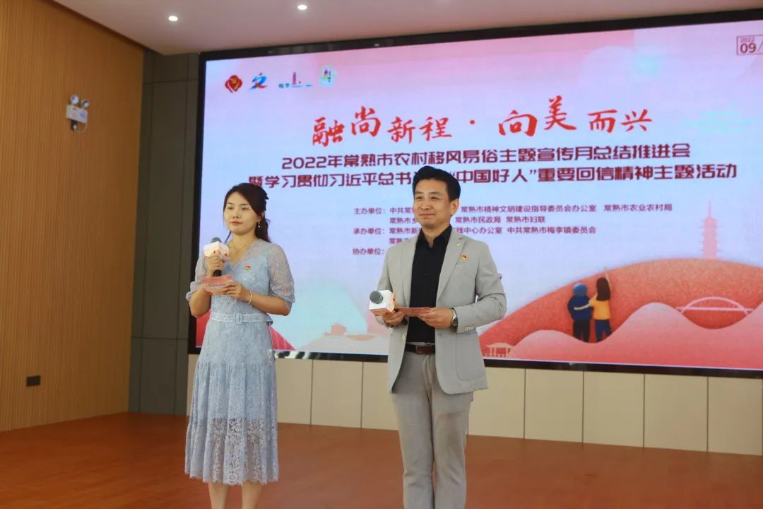 2022年9月29日,常熟市農(nóng)村移風(fēng)易俗主題宣傳月總結(jié)推進(jìn)會(huì)暨學(xué)習(xí)貫徹習(xí)近平總書記給“中國好人”重要回信精神主題活動(dòng)在聚沙西村新風(fēng)大禮堂隆重舉行,常熟市委宣傳部副部長、市文明辦主任王燕,梅李鎮(zhèn)黨委書記許曉波,龍騰特鋼董事長季丙元及相關(guān)單位領(lǐng)導(dǎo)和村民代表參加活動(dòng)。